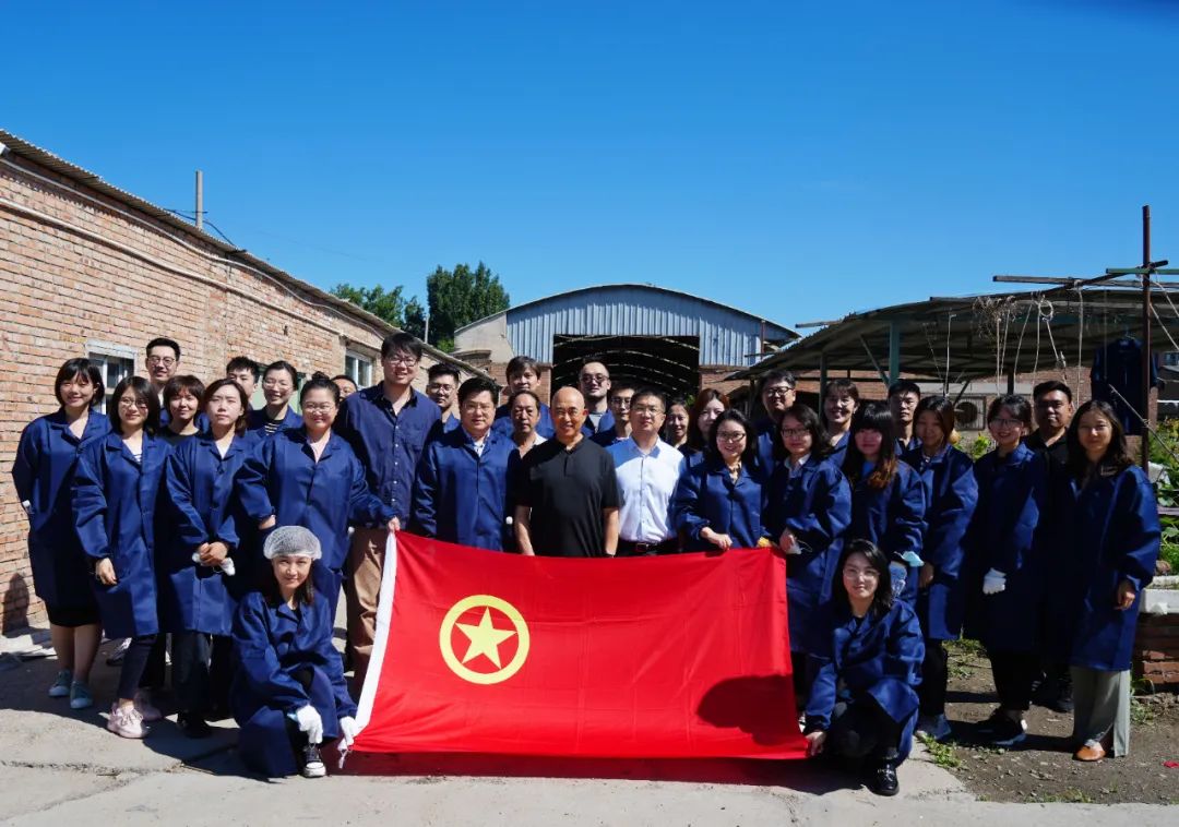 集团团委委员及二十余名团员青年,身穿蓝色工作服,整齐地站在东来顺糖蒜腌制生产车间,准备开始半天的志愿服务。