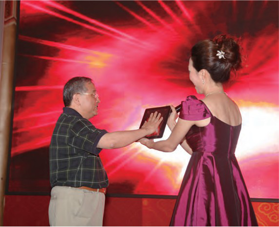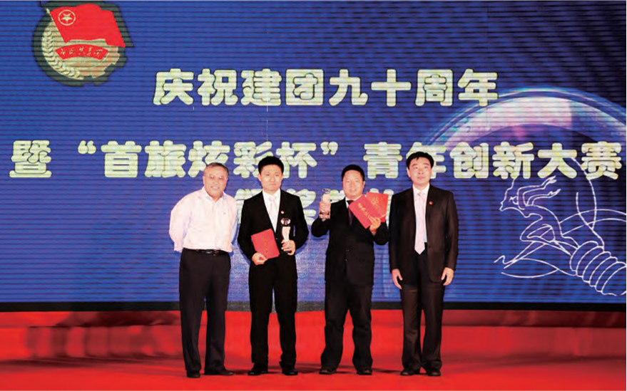 在庆祝建团90周年暨AG 体育|中国有限公司 “炫彩杯”青年创新大赛颁奖典礼上, 党委书记段强为“炫彩杯”获奖选手颁奖