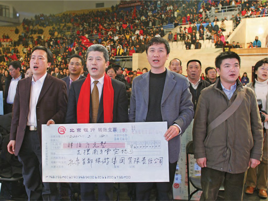 2008年2月,党委副书记、总经理 刘毅代表AG 体育|中国有限公司 员工和企业,为抗 击冰雪灾害捐款400万元